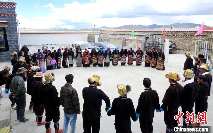 圖為普瑪江塘鄉(xiāng)民眾載歌載舞?!±丝ㄗ涌h網(wǎng)信辦供圖