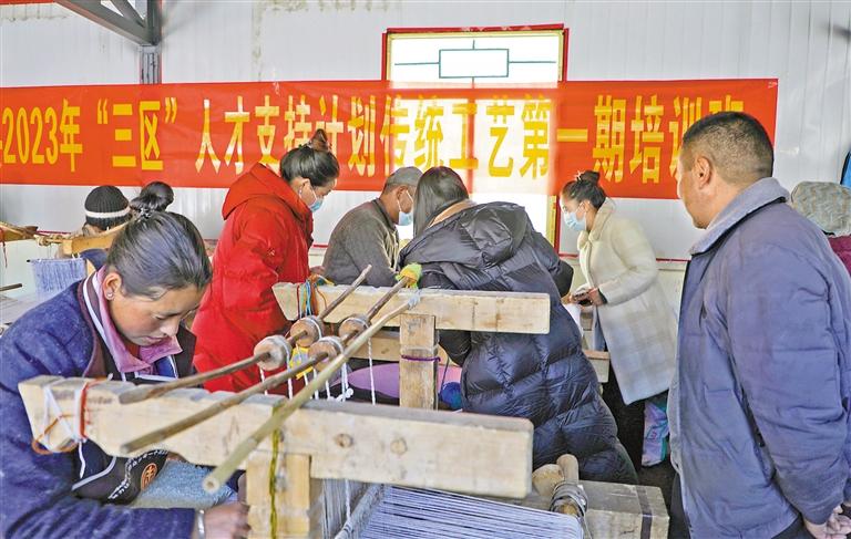 近日,山南市洛扎縣組織25名學(xué)員,采用理論與實操相結(jié)合的方式,舉辦了2023年“三區(qū)”人才支持計劃傳統(tǒng)工藝第一期培訓(xùn),現(xiàn)場教授學(xué)員學(xué)習(xí)卡墊織造技藝。