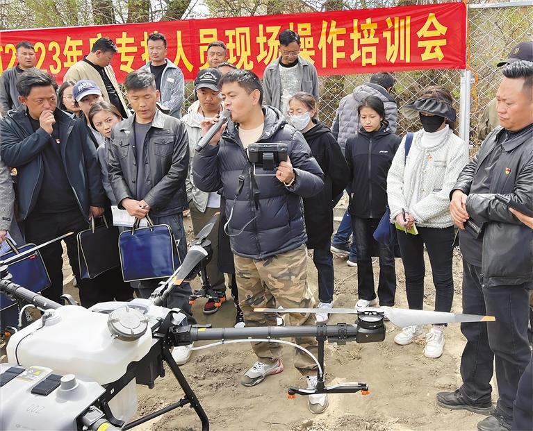 圖為授課老師在講解演示植保無人機結(jié)構(gòu)特點和操作要點。記者 扎西頓珠 汪純 攝