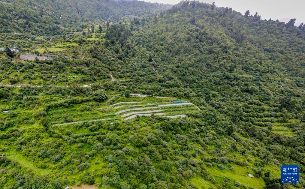 這是錯那市貢日門巴民族鄉(xiāng)斯木村的莓茶種植試驗田(無人機照片,7月28日攝)。新華社記者 旦增尼瑪曲珠 攝
