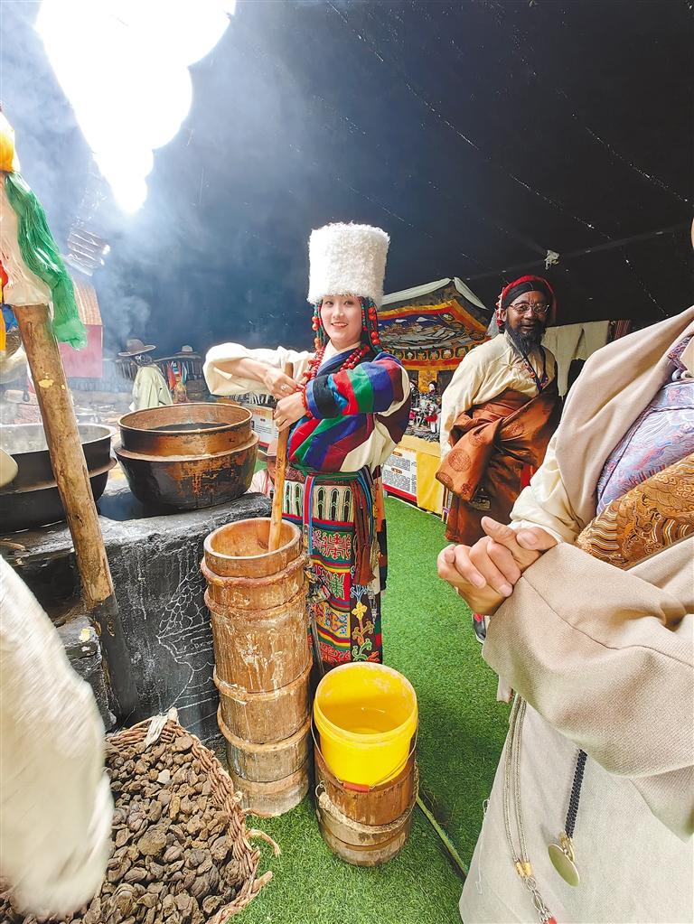群眾在進(jìn)行傳統(tǒng)技能展示。