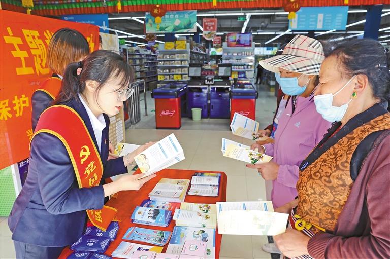 圖為興業(yè)銀行拉薩分行志愿者開展金融知識宣傳。