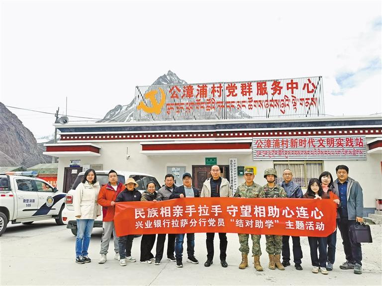 圖為興業(yè)銀行拉薩分行開展黨員“結(jié)對助學(xué)”主題活動時的合影。
