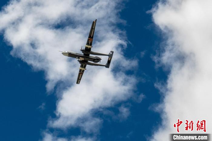 圖為“及時(shí)雨”大型無人機(jī)在高原飛行,進(jìn)行人工增雨(雪)科學(xué)試驗(yàn)。張歆平 攝