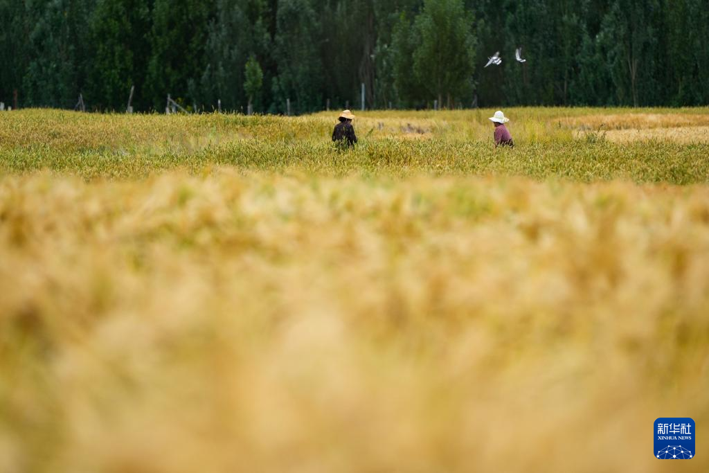 8月24日,乃東區(qū)的農(nóng)民在田間收割。新華社記者 姜帆 攝