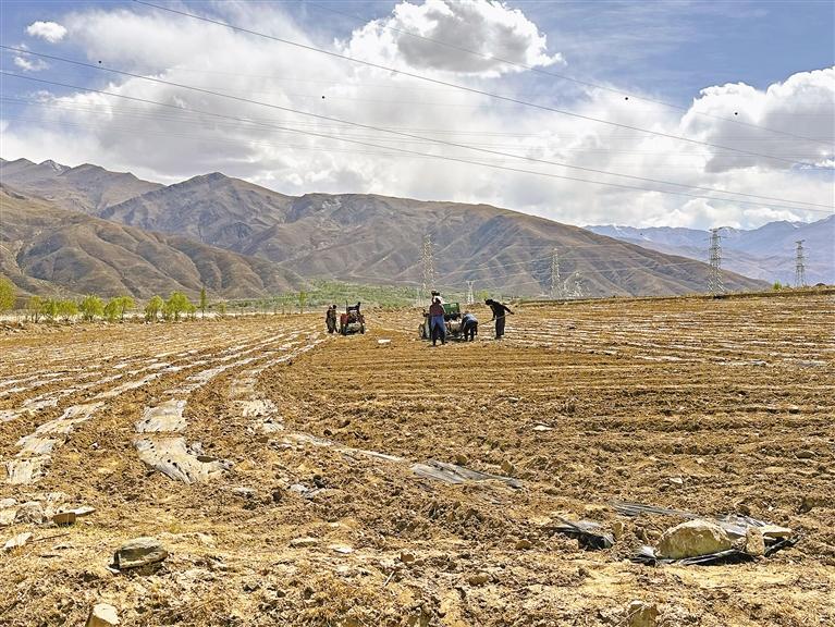 茶巴拉村3組村民尼瑪卓嘎經(jīng)常到這里打工,她說(shuō):“以前,為了改良雅魯藏布江沿岸的土地,村里動(dòng)員村民去其他地方運(yùn)來(lái)可耕種的土壤鋪在荒地表面。2022年,我們還在這里種植了苜蓿草,但幾乎絕收?!?/p>