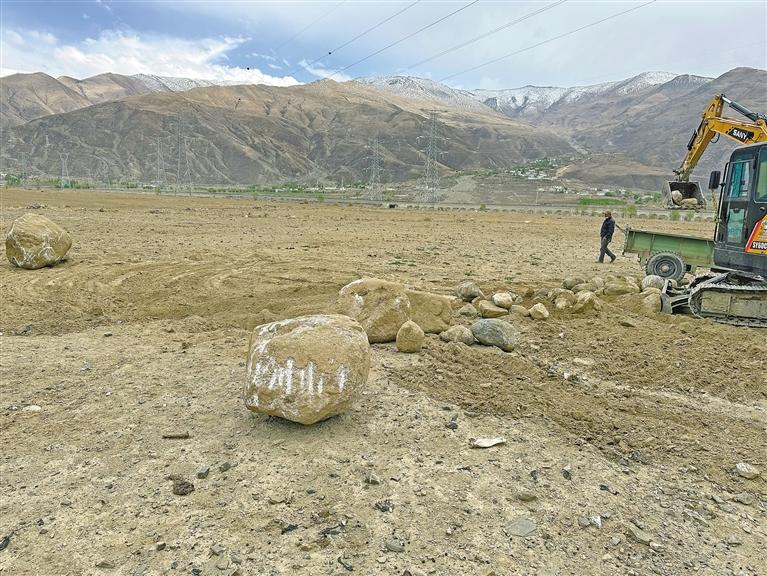 洛珠達(dá)瓦打開(kāi)手機(jī)中的相冊(cè),他指著挖石頭的視頻說(shuō):“雅魯藏布江沿岸土地中的石頭太多了,有些石頭重達(dá)幾噸,根本無(wú)法種植任何農(nóng)作物。為了撿石頭、挖石頭,我們每天從村里雇10多個(gè)人來(lái)干活?!?/p>