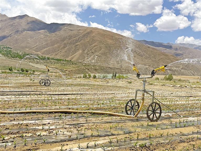 次仁頓珠是西藏曲水藏禾農(nóng)業(yè)綜合開(kāi)發(fā)有限公司的一名工作人員。他說(shuō),剛開(kāi)始澆灌土地時(shí),他們直接從雅魯藏布江抽水,不過(guò)到了雨季,抽水泵都被大水沖走了,他們不得不另想辦法,從村中的地下機(jī)井抽水到溝渠,直接將水引到田間地頭。