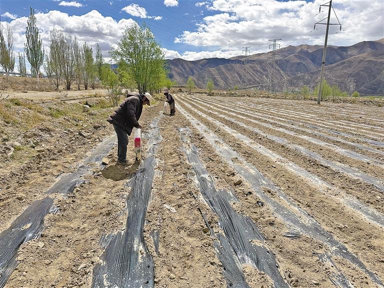 茶巴拉村村民在播種玉米。
