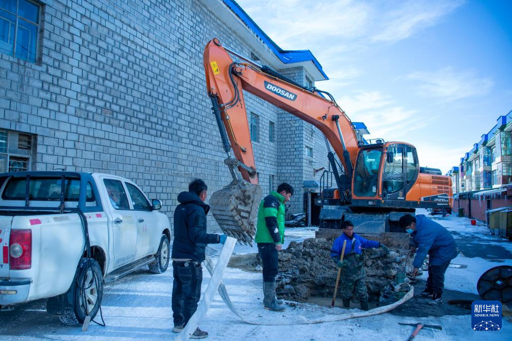 12月15日,加才曲達(dá)和同事們一起搶修地下管網(wǎng)。新華社發(fā)(旦增努布攝)