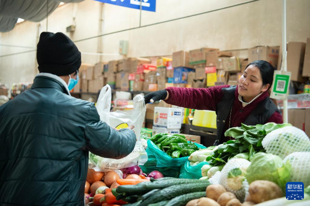 12月15日,羌域市場里,一名顧客在購買蔬菜。新華社發(fā)(旦增努布攝)