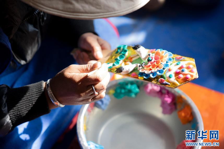 圖為西藏現(xiàn)代服務(wù)業(yè)技工學校的學員正在學習制作酥油花(1月29日攝)。新華網(wǎng)發(fā) 李騰 攝