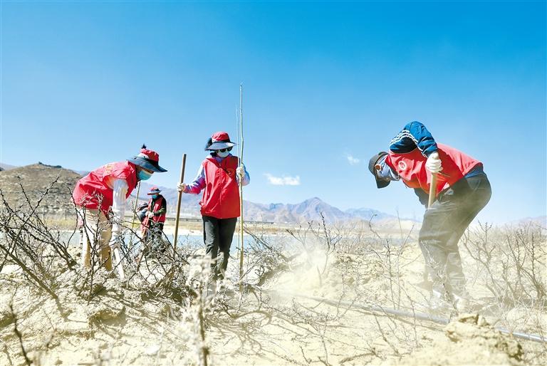 雅魯藏布江兩岸人義務(wù)植樹活動