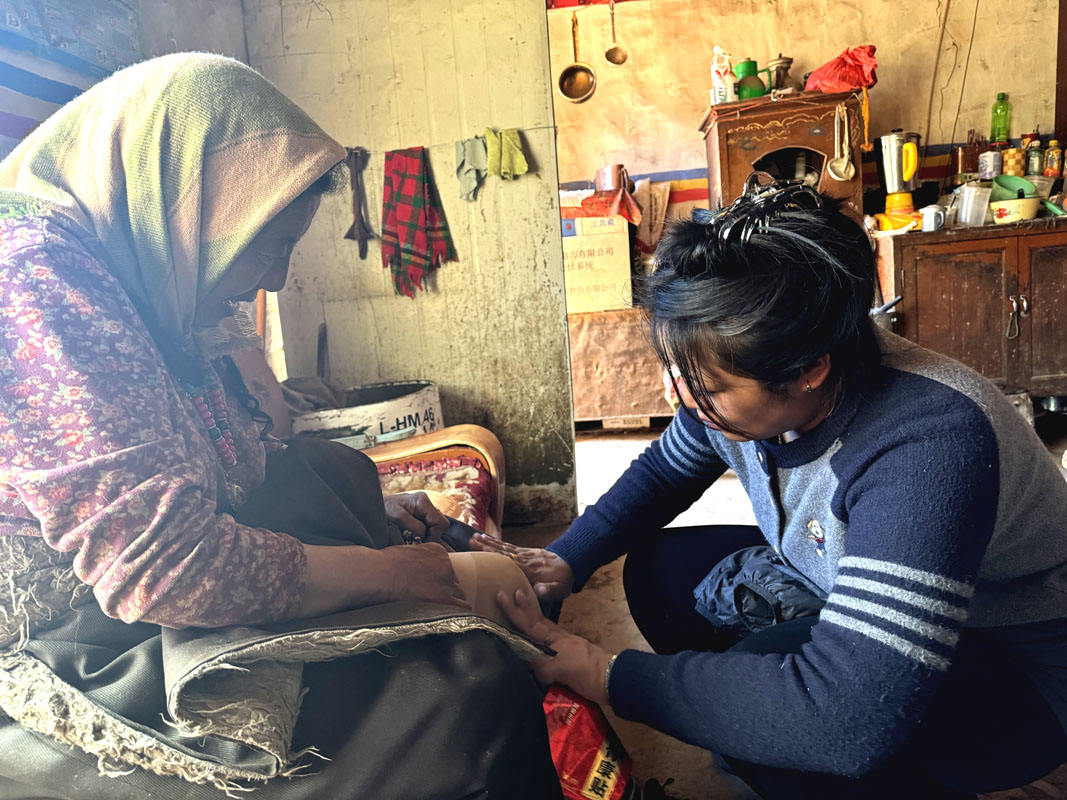 從“實”處出發(fā),走心為民辦實事,使黨群關(guān)系更加密切。每到一戶,駐村工作隊耐心傾聽、收集牧民群眾對村居各項工作的意見建議和訴求,以及當(dāng)前階段生產(chǎn)生活中存在的困難和訴求,發(fā)放《西恰曲超超貢瑪村駐村工作隊便民服務(wù)聯(lián)系卡》89張,收集到群眾意見建議2條,讓牧民群眾心里更加踏實。先后為路途較遠且在夏季牧場的群眾送去感冒、發(fā)燒、咳嗽、膏藥貼等常見易發(fā)病非處方治療藥物9種15類、折合人民幣750元藥品。為12名出行不便老人進行理發(fā),為1位個體戶解決了打印機無法使用問題。慰問五保老人和困難戶2戶7人,送去慰問金400元。在看到頓珠老人因家人前往安多縣送學(xué)生上學(xué)獨自在家且所穿衣物偏薄,駐村工作隊員便分別拿出自己換洗的保暖衣物為其換上。