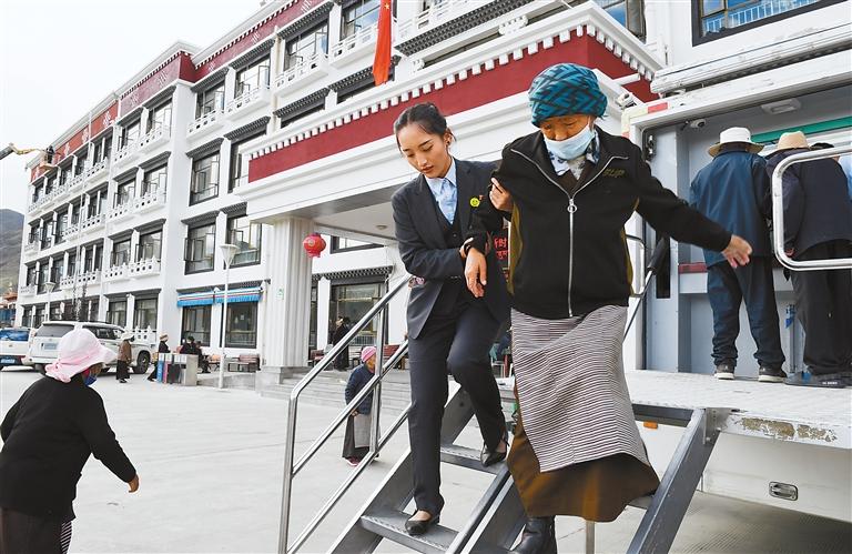 工作人員為老人辦理業(yè)務(wù)。記者 旦增藍(lán)澤 攝