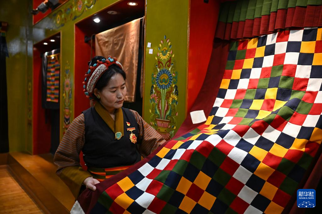 西藏日喀則市仁布縣特色產(chǎn)業(yè)孵化園,亞德細(xì)褐紡織手工藝傳承人南木珍在展示作品