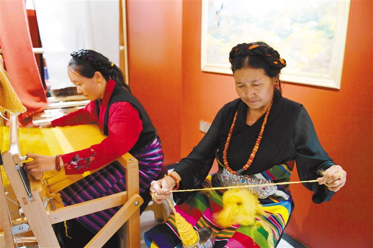 近年來,在上海市第十批援藏江孜小組的支持下,江孜縣打造氆氌制作的“前店后坊”模式,將現(xiàn)代技術(shù)融入傳統(tǒng)工藝中,在江熱鄉(xiāng)班覺倫布村設(shè)立“阿佳格桑工坊”。通過改進(jìn)傳統(tǒng)工藝、提升文化創(chuàng)意附加值,推動(dòng)氆氌實(shí)現(xiàn)選材從羊毛到羊絨的改變、外觀從工藝向設(shè)計(jì)蛻變、從業(yè)者從工人到工匠的轉(zhuǎn)變。