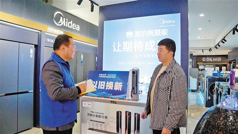 圖為在拉薩家具家電以舊換新專場,消費(fèi)者向銷售人員了解相關(guān)政策。記者 貢曲羅杰 攝
