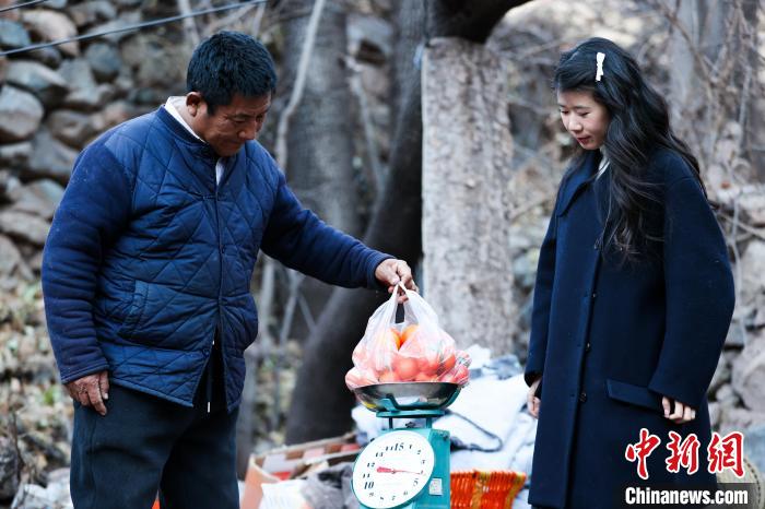 圖為游客在果園內(nèi)購(gòu)買(mǎi)康巴蜜橘。中新社記者 薛蒂 攝