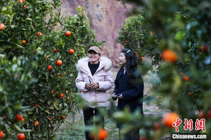 12月20日,冬至前夕,西藏自治區(qū)昌都市芒康縣納西民族鄉(xiāng)加達(dá)村橘子園里一片繁忙景象。納西民族鄉(xiāng)地處瀾滄江河谷,以山地為主,瀾滄江穿境而過(guò),河谷地帶土地肥沃,黃澄澄的康巴蜜橘掛滿枝頭,果農(nóng)們穿梭其中,熟練地采摘已成熟的果實(shí)。圖為游客在橘子園中自拍留念。中新社記者 薛蒂 攝