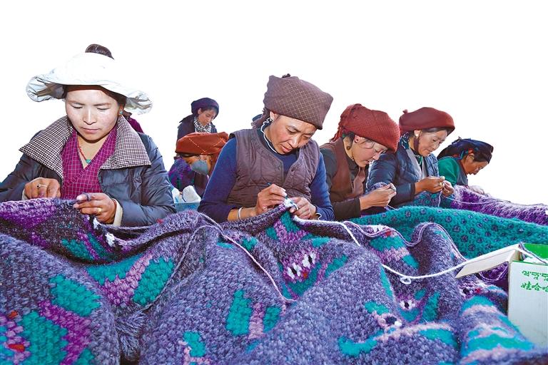 圖為參加培訓(xùn)的婦女群眾認(rèn)真學(xué)習(xí)編織技術(shù)。記者 格桑倫珠 通訊員 果珍 攝