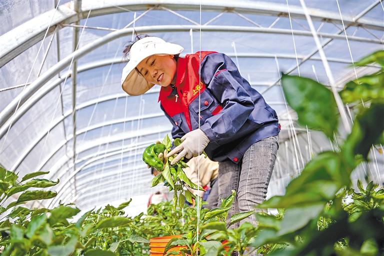 拉薩冬意漸濃,園區(qū)連片的溫室大棚,在冬日暖陽(yáng)下熠熠生輝,宛如一個(gè)個(gè)孕育希望的“菜籃子”,豐富冬日市場(chǎng)供應(yīng)。走進(jìn)蔬菜大棚,棚內(nèi)暖意融融、綠意盎然,黃瓜、西紅柿、青椒等各類(lèi)蔬菜均已進(jìn)入成熟期,長(zhǎng)勢(shì)十分喜人。眼下,正是大棚青椒采摘期,一壟壟、一株株青椒掛滿(mǎn)枝頭,工作人員三五成群忙著采摘,現(xiàn)場(chǎng)一派繁忙景象?!安烧嘟芬蛏险郏@樣才不會(huì)損傷植株?!痹诘┰銮闹笇?dǎo)下,工作人員很快完成了采摘工作,打包、稱(chēng)重后,37袋青椒被整齊地?cái)[放在一起,等待著裝車(chē)發(fā)貨。