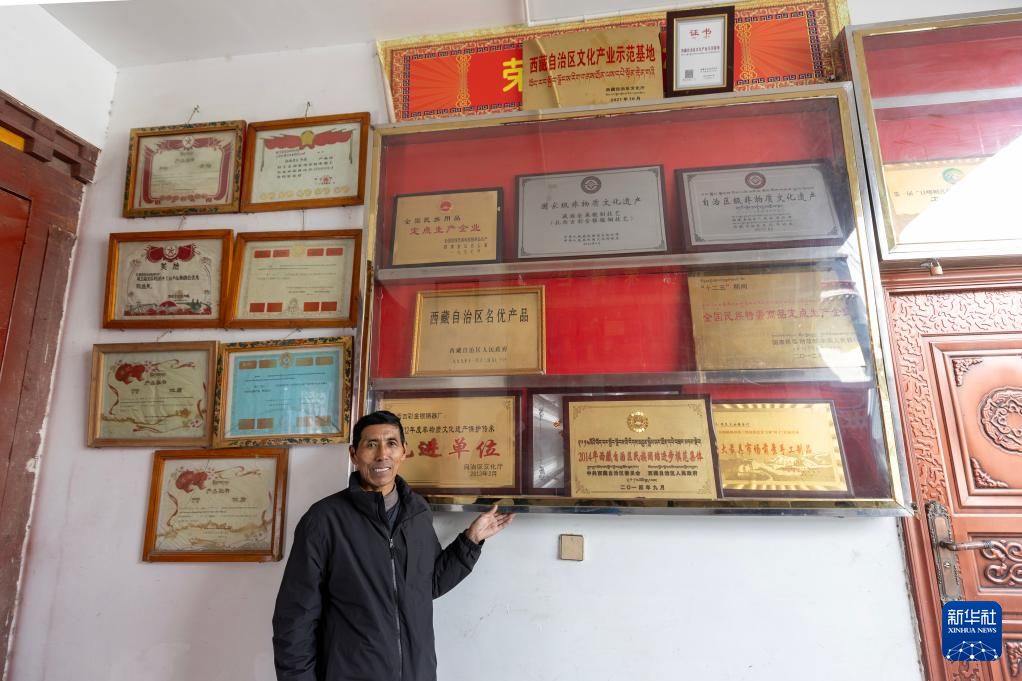 廠長拉巴瓊達是這項非物質文化遺產的代表性傳承人。如今,他帶領18個匠人和學徒把廠子做得紅紅火火,2024年平均每個工人每月收入達到7000多元,靠非遺手藝實現了共同富裕。