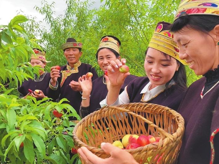 近年來,嘎拉村發(fā)展“桃花經(jīng)濟”,做好“旅游+”文章,打造以桃花源景區(qū)為主的鄉(xiāng)村旅游產(chǎn)業(yè),同時發(fā)展觀光采摘園,擦亮“桃花村”品牌。村里組建農(nóng)牧民運輸隊,積極參與重大項目建設(shè),集體經(jīng)濟日益壯大、村民“腰包”越來越鼓,群眾吃上“生態(tài)飯”、走上“致富路”。