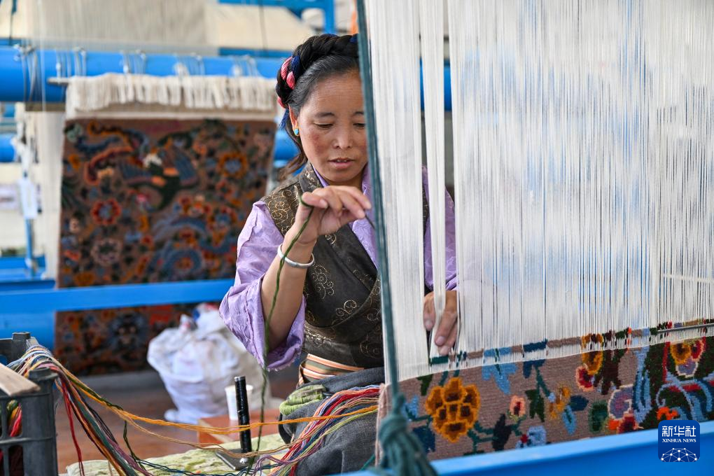 近年來,江孜藏毯不僅嚴(yán)守織造技藝中代代相傳的“魂”——穿桿式連環(huán)八字扣,又在數(shù)字制圖、生產(chǎn)工藝提升方面創(chuàng)新,使圖案產(chǎn)生光影流動(dòng)的3D效果。當(dāng)?shù)氐牟靥汗就ㄟ^建立合作社、開辦技能培訓(xùn)班等方式擴(kuò)大靈活就業(yè)規(guī)模,讓更多人在家門口織藏毯增收,助推鄉(xiāng)村振興。