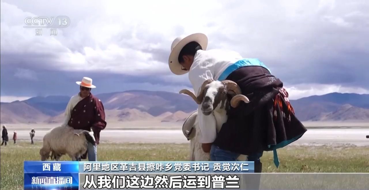 阿里地區(qū)革吉縣擦咔鄉(xiāng)黨委書記 貢覺次仁:歷史時期,我們這邊采鹽的湖稱作章倉三湖。鹽以綿羊作為交通工具,每只綿羊大概背20斤左右,從我們這邊運(yùn)到普蘭、日喀則,到印度、尼泊爾等地,以物易物的方式進(jìn)行交易。