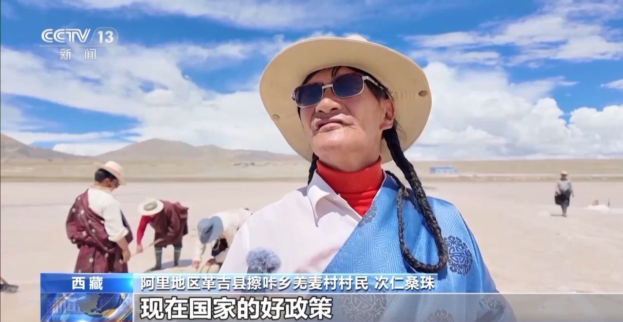 阿里地區(qū)革吉縣擦咔鄉(xiāng)黨委書記 貢覺次仁:我覺得有這樣一個鹽礦資源,我們?nèi)罕娨材軌蚩孔约旱碾p手能夠運(yùn)作起來,所以我認(rèn)為鹽廠就是下一步,整個羌麥村的主要的經(jīng)濟(jì)實力,也是一個發(fā)展前景最好的經(jīng)濟(jì)實體。
