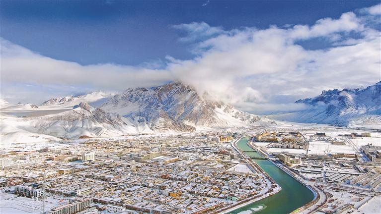 圖為阿里地區(qū)獅泉河鎮(zhèn)鳥瞰圖(資料圖片)。記者 洛桑旦增 達(dá)珍 永青 攝