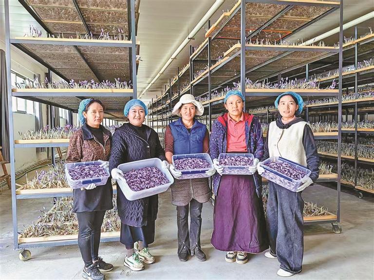 據(jù)了解,從2018年開始在巴宜區(qū)米瑞鄉(xiāng)試種藏紅花,到2024年,基地藏紅花年產(chǎn)量達(dá)160公斤,實現(xiàn)了藏紅花規(guī)?;N植。在這期間,藏紅花種植逐漸成為帶動當(dāng)?shù)厝罕娫鍪罩赂?、助力鄉(xiāng)村振興的新引擎。