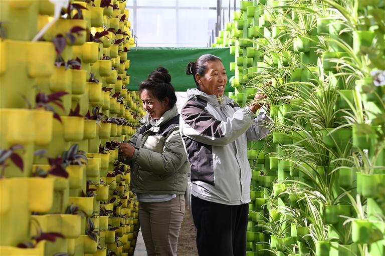 圖為拉薩市才納國家現(xiàn)代農(nóng)業(yè)示范園區(qū)的工作人員正在育苗。西藏日?qǐng)?bào)記者 洛桑 攝