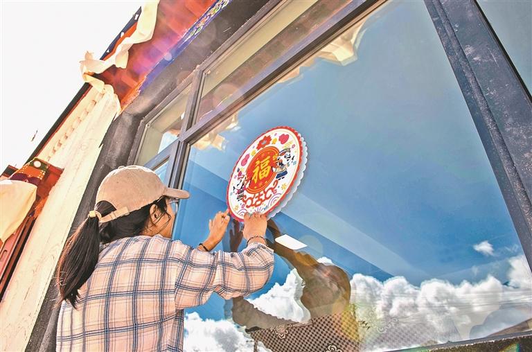 定結(jié)縣郭加鄉(xiāng)乃村重建點(diǎn),群眾正在為新家貼福字。記者 旦增嘎瓦 攝