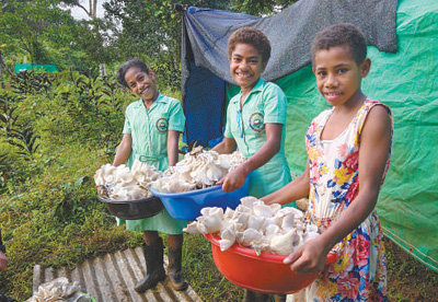 中國政府面向斐濟等太平洋島國推廣菌草技術,推動當地經濟發(fā)展,助力當地民生改善。圖為在斐濟奈塔希里乳業(yè)婦女組織菌草技術示范點,孩子們正在幫忙采菇。