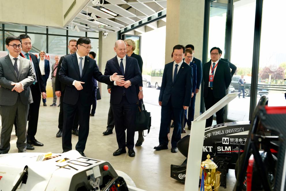 2011年,朔爾茨作為漢堡市市長(zhǎng),曾訪問同濟(jì)大學(xué),并為學(xué)校師生作報(bào)告。此次到訪同濟(jì)大學(xué)嘉定校區(qū),朔爾茨稱之為“稍遠(yuǎn)的校園”。在這里,他與近160名學(xué)生圍繞德中青少年交流、可持續(xù)發(fā)展、智慧城市、人工智能等話題展開對(duì)話交流,對(duì)同濟(jì)大學(xué)作為中德高教合作橋梁在國際化人才培養(yǎng)和科技創(chuàng)新方面取得的成績(jī)表示贊賞。