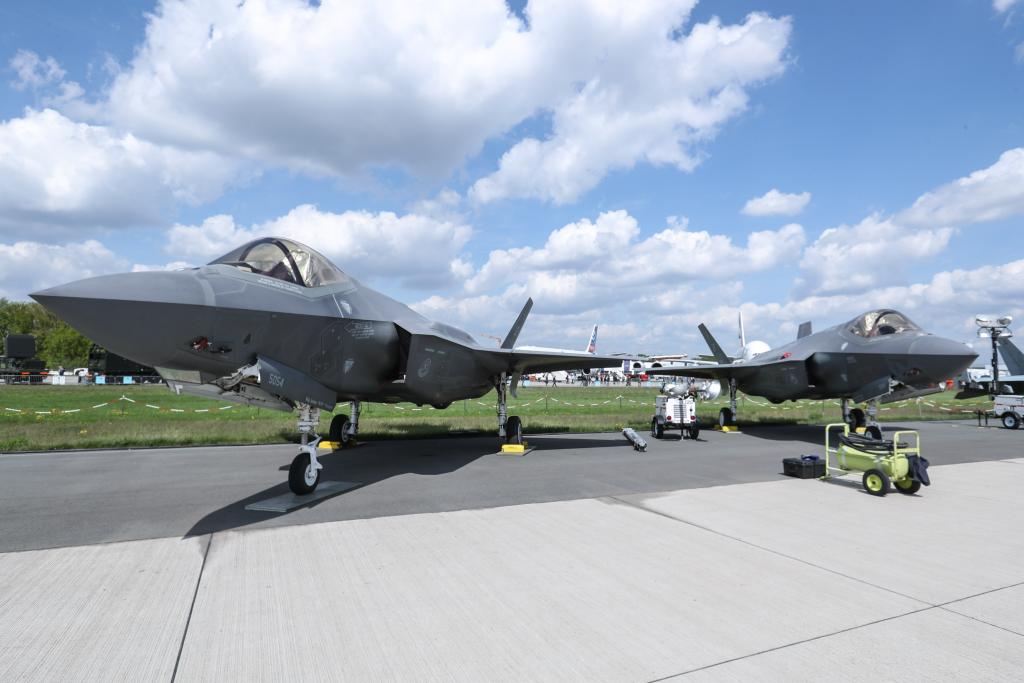 這是2018年4月27日在德國柏林國際航空航天展上拍攝的“F-35”型戰(zhàn)機。新華社記者單宇琦攝