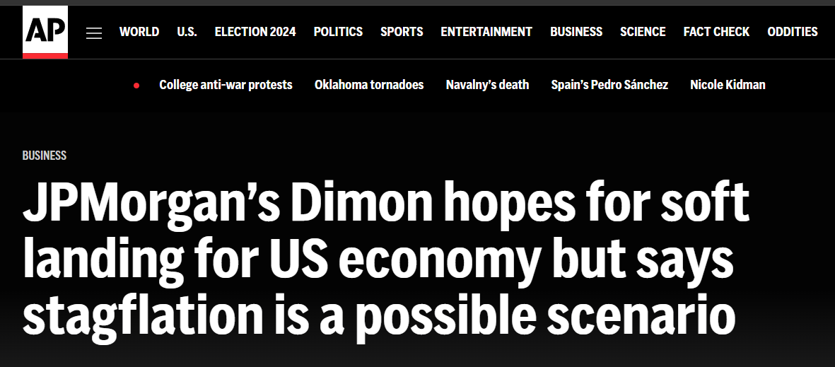 近日,摩根大通公司首席執(zhí)行官杰米·戴蒙在接受美聯社采訪時稱,他對美國經濟仍保持“審慎”,并表示通脹可能會在更長時間內變得更棘手,“滯脹也可能是(美國經濟面臨的)一種情況”。