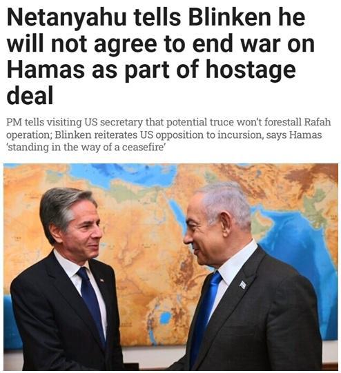 但內(nèi)塔尼亞胡回應(yīng)說,以軍在拉法的軍事行動"沒有先決條件",對拉法的進(jìn)攻將會發(fā)生,以色列不會同意"迫使其結(jié)束與哈馬斯戰(zhàn)爭"的協(xié)議。