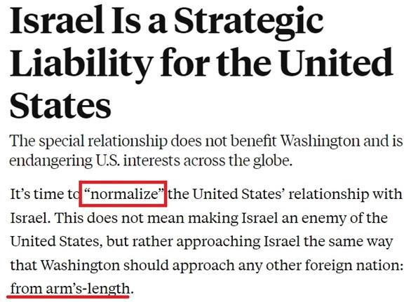 然而,美國《外交政策》雜志刊文分析,以色列如今已成為美國的戰(zhàn)略負(fù)擔(dān),現(xiàn)在到了推動美國同以色列關(guān)系"正?;?的時候了。美國對待以色列,要像其對待任何其他國家一樣:保持距離。
