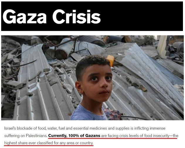 而根據(jù)國際救援委員會(IRC)的統(tǒng)計,目前,加沙的200多萬巴勒斯坦民眾每天都面臨危險和災(zāi)難。以色列對糧食、水、燃料和基本藥品及用品的封鎖正在給巴勒斯坦人造成巨大痛苦。目前,100%的加沙人面臨著糧食不安全的危機(jī),達(dá)到世界上所有國家和地區(qū)有記錄以來的最高水平。
