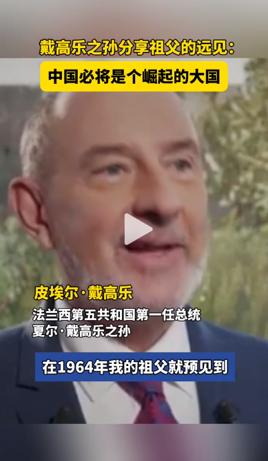 戴高樂之孫分享祖父對中國發(fā)展的遠(yuǎn)見:必將崛起的大國