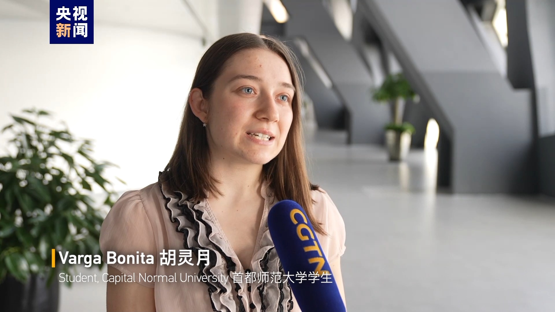 首都師范大學(xué)學(xué)生 瓦爾加·博尼塔 (又名 胡靈月):(這是)我和宋智孝第二次獲得大使獎學(xué)金。 我們對此感到非常高興和興奮。 我們想分享我們的喜悅。所以,我們給習(xí)近平主席寫了一封信。