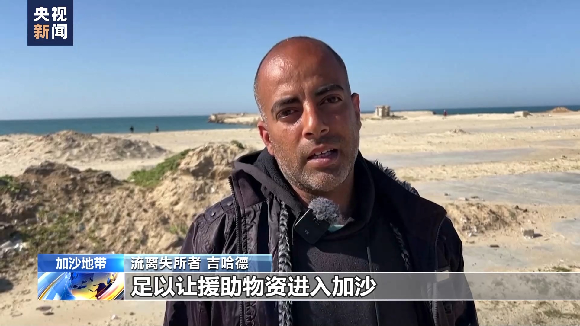 加沙地帶流離失所者 吉哈德:我認(rèn)為加沙地帶的多個(gè)陸地口岸,足以讓援助物資進(jìn)入加沙,并為加沙北部和南部的民眾提供食物。我不是政治分析人士,但我想美國(guó)修建港口背后一定有巴勒斯坦人不知道的政治目的。