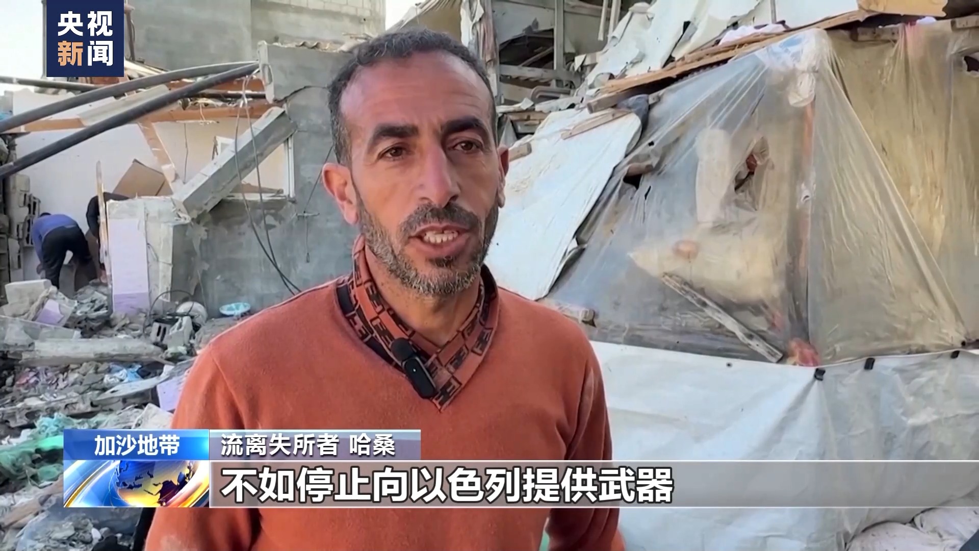 加沙地帶流離失所者 哈桑:與其告訴我們說(shuō),他們會(huì)建一個(gè)港口來(lái)幫助我們,不如停止向以色列提供武器。所有那些來(lái)自美國(guó)的武器,隨時(shí)隨地都在殺死我們和我們的孩子。
