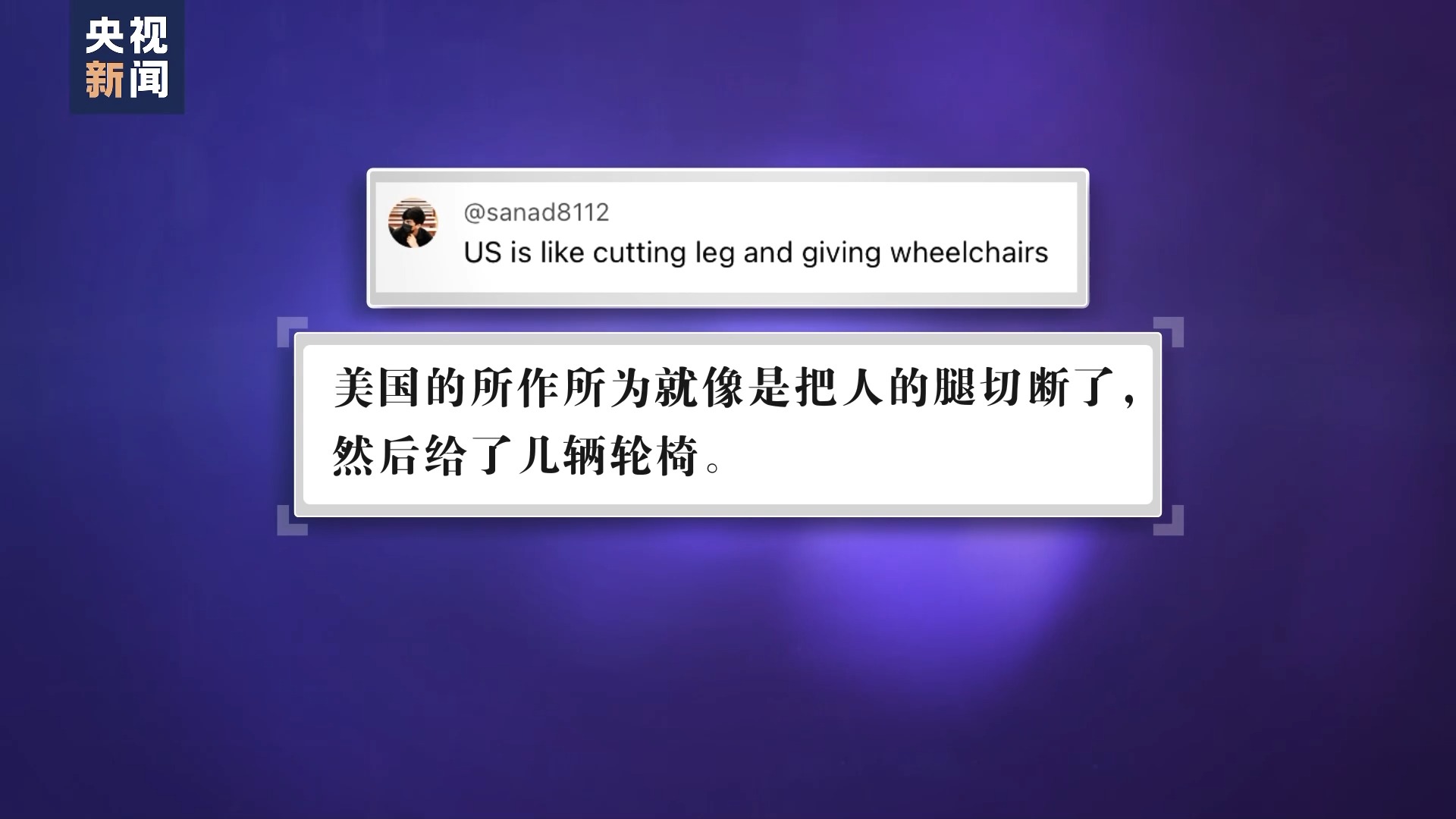 ——美國(guó)的所作所為就像是把人的腿切斷了,然后給了幾輛輪椅。