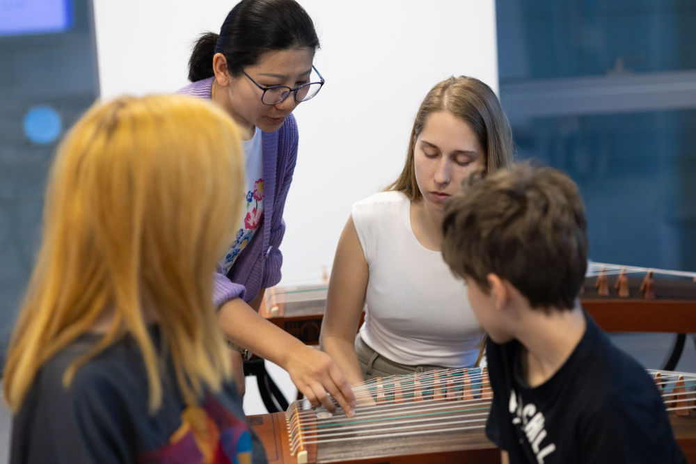 2024年4月29日,在貝爾格萊德中國文化中心,古箏指導老師王宣(后左)在教學。
