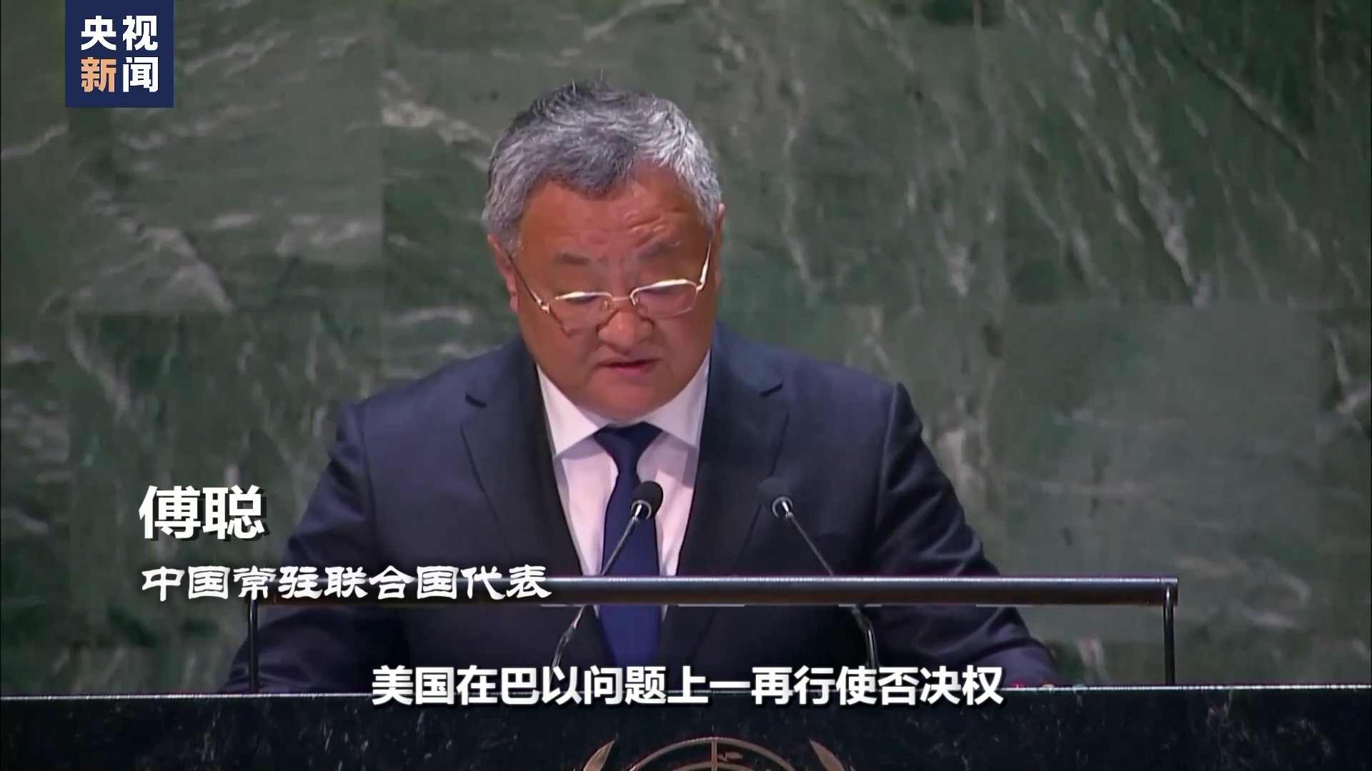 中國(guó)常駐聯(lián)合國(guó)代表 傅聰:美國(guó)在巴以問(wèn)題上一再行使否決權(quán),無(wú)理阻撓國(guó)際社會(huì)為解決巴勒斯坦長(zhǎng)期遭受歷史不公所作出的努力,不符合一個(gè)負(fù)責(zé)任大國(guó)的擔(dān)當(dāng)。