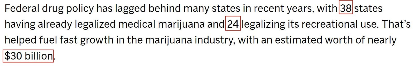 這推動了大麻產(chǎn)業(yè)在美國的快速發(fā)展,估計其商業(yè)及市場價值近300億美元。